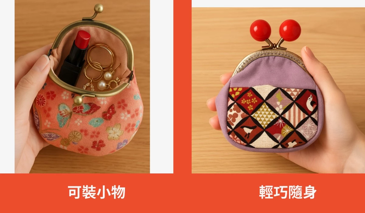 木布拾光日系手作口金包,選用和風花布拼接與復古口金五金,小巧可愛但不幼稚。可收納零錢、鑰匙、耳環戒指、口紅、香水小瓶等隨身小物,開合方便、整理更俐落;多款花色與造型(含金魚款)可選,自用療癒、送禮也很有質感與心意。